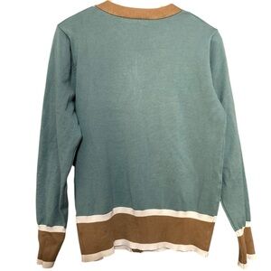 Grace Karin Women’s Size M Blue Teal Colorblock Button Up Sweater Cardigan