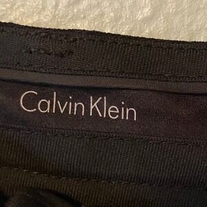 Keywords: Calvin Klein pants, women's trousers, black dress pants, textured fabric, pleated front, workwear, business casual, evening attire, classic style, tailored pants, professional wardrobe, sophisticated