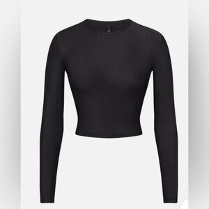 NWT Skims Shine Spandex Jersey Long Sleeve Cropped Tee Onyx Size Large