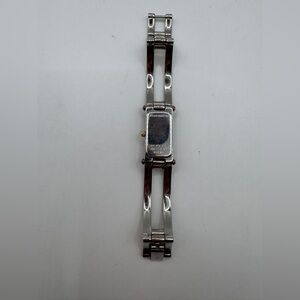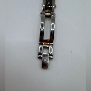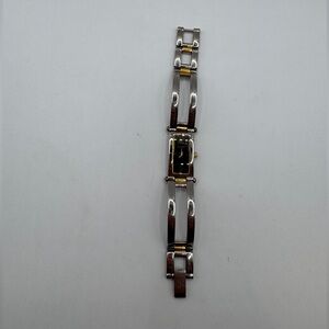 Case: Rectangular, stainless steel with gold-tone accents