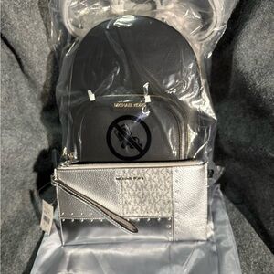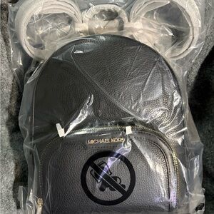 Elegant black pebbled leather backpack by Michael Kors. Features gold-tone hardware. Ideal for daily use.