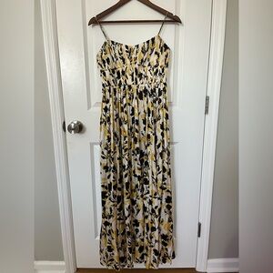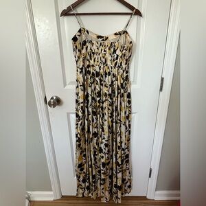 Beautiful J.Crew Collection ruched maxi dress in luster georgette. Adjustable straps for most heights; I’m 5’5” and could adjust to hit at my ankle. Worn once to a wedding and dry cleaned. Size 2.