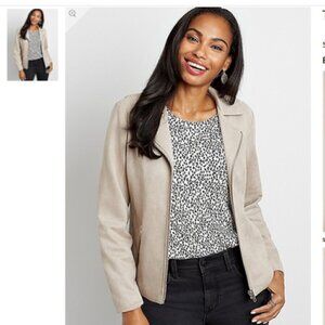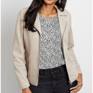 NWT - MAURICES TAUPE FAUX SUEDE MOTO JACKET