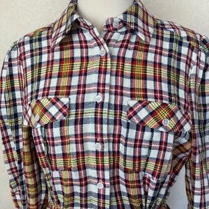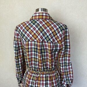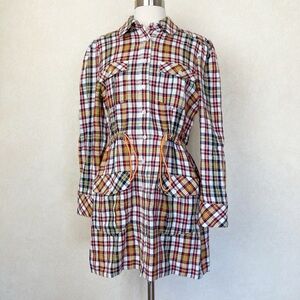 Veronica Beard Corinne Plaid Button-Up Shirt Dress Gray Yellow Red Size 4