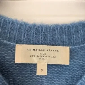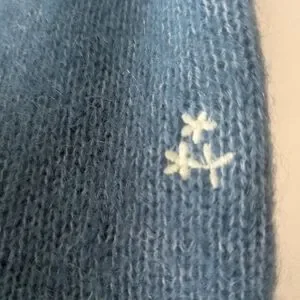 Sezane Blue Sweater with White Floral Embroidery Size S