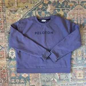 Peloton logo sweatshirt, slightly cropped. Purple with navy blue logo. Dog friendly, smoke free home.