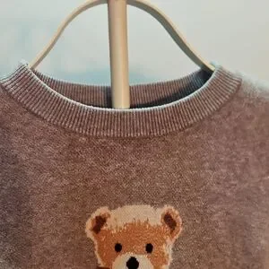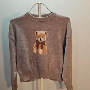 Cozy gray sweater featuring an adorable bear design. Perfect for adding a playful touch to your wardrobe.