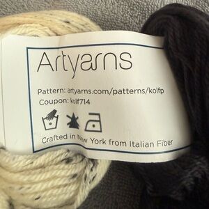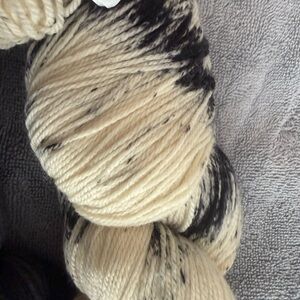 Two skeins of yarn in black and cream. Perfect for knitting projects.