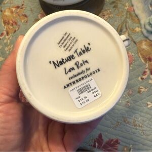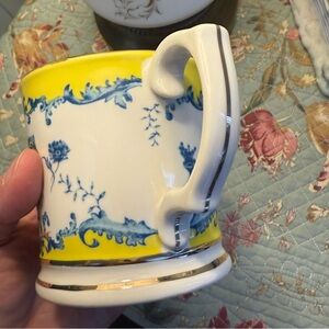 NWT Anthropologie Owl Coffee Tea Mug Nature Table Lou Rota Yellow & Blue Gold