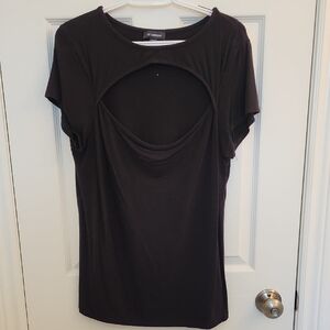 Chic black top with a stylish cutout. Ideal for everyday wear.