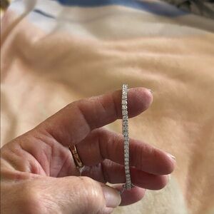 This dazzling silver bracelet is perfect for adding a touch of elegance to any ensemble. Its sleek design makes it a versatile accessory for any occasion. 6.00 carat regular price $1,000.