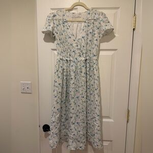This is CDs first dress she ever made! So beautiful and breezy, perfect for summer. This is the OS which translates to a S but can fit multiple sizes due to the drawstring waist. Perfect condition.