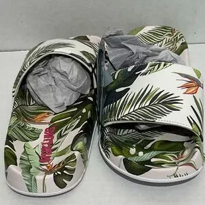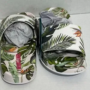 Muk Luks Women's Green White Tropical Slip On Slide Sandals Size Small 5-6 NWT