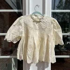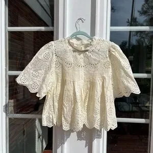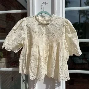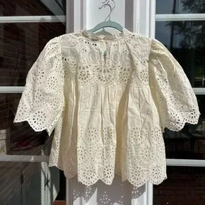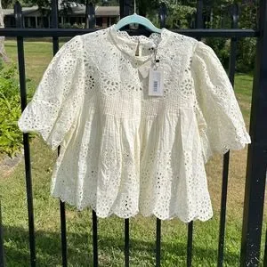 Stunning sea ny Lainey embroidered blouse. Never been worn, with tags attached. The Lainey embroidered short sleeve top features delicate eyelet embroidery throughout, short puff sleeves and scalloped hemline.