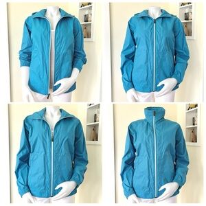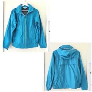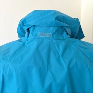 Columbia teal blue rain jacket wind breaker with hidden roll up hood