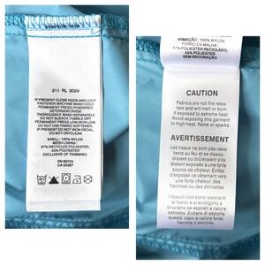 Omni shield water repellent. Back is vented with mesh. Has front zippered pockets. Lightweight. Elastic sleeve cuffs and waist hem. Nylon. Long sleeve. Zipper front.