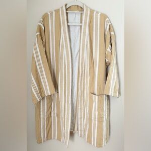 Eileen Fisher OS Butter Yellow and White Gauzy 100% Organic Cotton Kimono Jacket