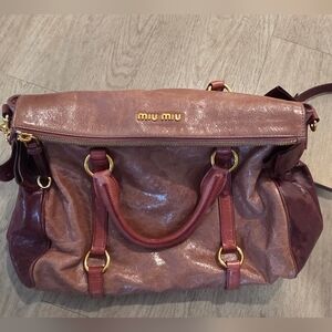 Authentic Miu Miu Vitello Lux Bow Pink and Burgundy 2way Leather Bag