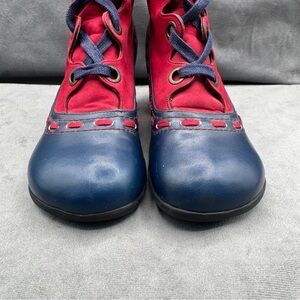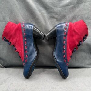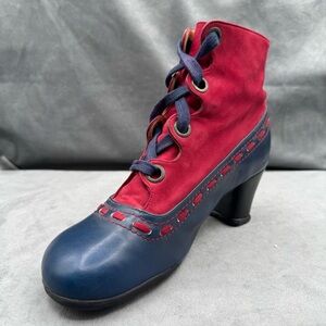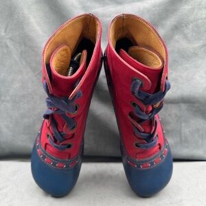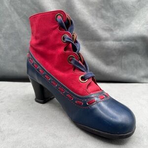 John Fluevog Operetta Bordoni Ankle Boots Women’s 8 Navy & Red Leather