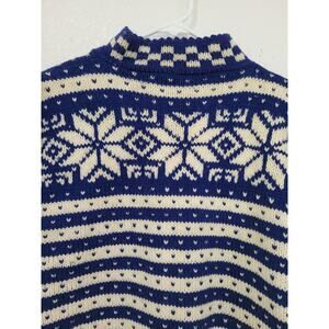 Vintage Berlou Norweigan Wool Winter Snowflake Blue Sweater L-XL #17
