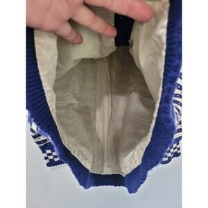 This vintage Berlou sweater is a unique find! Featuring a charming winter snowflake pattern in blue and cream, this wool-lined sweater is perfect for staying cozy and stylish during the colder months. Size L-XL