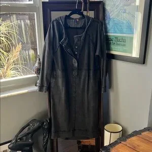 Really cool washed black long pullover with side, slits and side, hip pockets, snap neck line, 100% cotton. A nice washed, black color, never worn, unfortunately unfortunately I removed the tag.