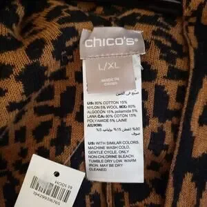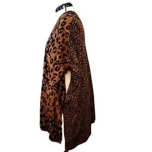Add effortless style and cozy comfort to your wardrobe with this Chico’s Animal Print Jacquard Ruana Shawl Wrap Sweater, Size L/XL. Crafted in a soft jacquard knit with a chic animal print design, this versatile piece drapes beautifully as a shawl, wrap, or layering sweater.