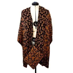 • Style: Animal Print Jacquard Ruana Shawl Wrap Sweater