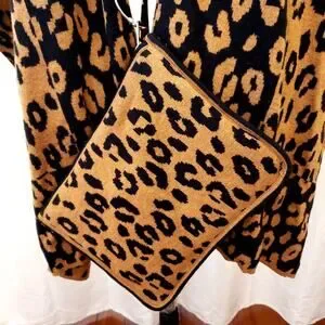 Chico's Animal Print Jacquard Ruana Shawl Sweater w/ Matching Bag | Size L/XL