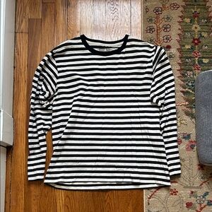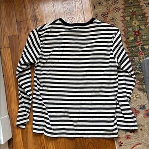 Stylish black and white striped long sleeve shirt. Perfect for casual wear. Size has worn off but men’s size large!