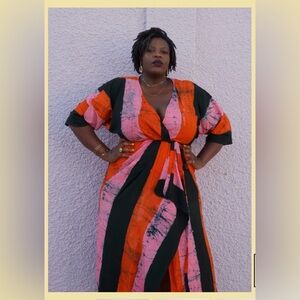 Size Large made for 38"-39" Bust, 31"-33" Waist, 40"-42" Hip, actual circumference of dress made to be wrapped: 42”, length 52.5”