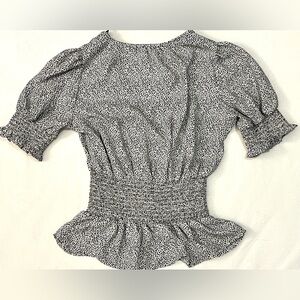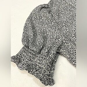 Sienna Sky Black and White Leopard Print Smocked Blouse Size Small