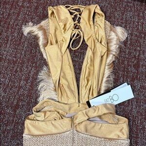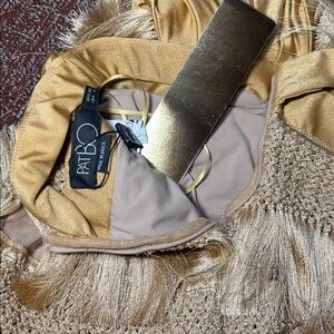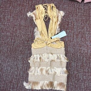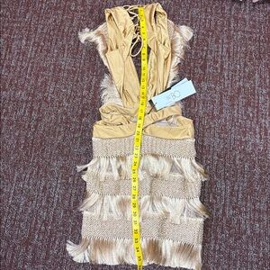 NWT PatBo Fringe plunging mini dress in Almond Womens 4