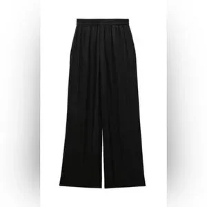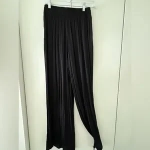 High waist pants with elastic waistband. Front pockets. Wide leg.