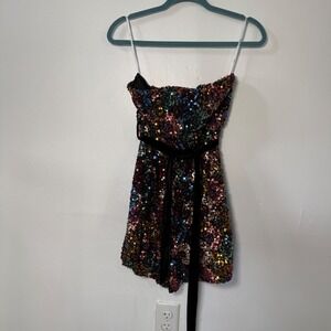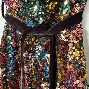 Lulus women's Strapless Sequin Romper Rainbow Velvet Belt Size Small