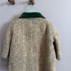 Keywords: Vintage Toddler Coat, Wool Herringbone, Velvet Collar, Grandmillennial, Cottagecore, Old Money, Winter Dress Coat, Heirloom, Theatre Wardrobe, Film Costume, Period Piece, Victorian, Edwardian, Dickensian, Stage Wear, Historical, Nutcracker, Christmas.