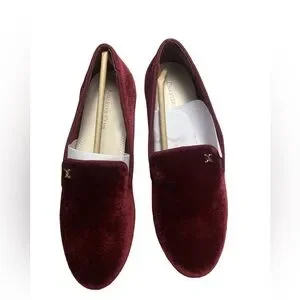 Charter Club Burgundy Velvet Loafers Gold Accent Size 7.5
