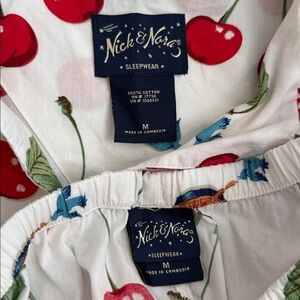 Nick & Nora Pajama Set VTG Vintage Cherry Pie Blue Birds Size Medium 100% Cotton
