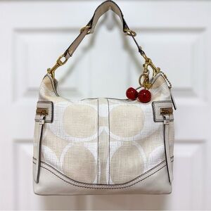 Coach Vintage Signature Linen and Ivory Leather Hobo Bag