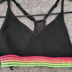PINK Victoria's Secret Black Sports Bra with Neon Stripes