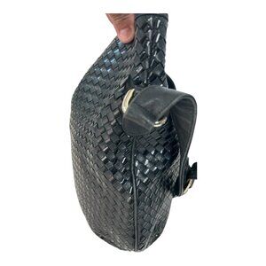 Vintage Ganson Black Leather Woven Handbag | Made in Hong Kong - Beautiful Bag