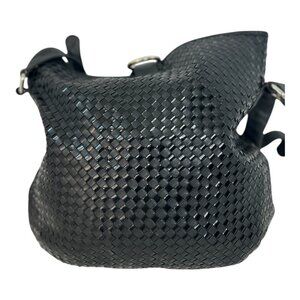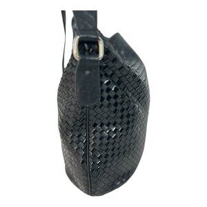 Vintage Ganson Black Leather Woven Handbag | Made in Hong Kong