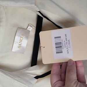 NWT Sancia The Label two-piece matching set featuring the Laine shirt and Cambrie shorts in pearl. Chic resort-inspired set perfect for vacation, brunch, summer events, or elevated casual wear. Lightweight fabric with contrast trim gives a polished yet relaxed look.