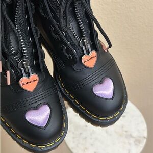 Worn Once Women DR MARTENS Sinclair black Leather hearts platform boots Sz 9