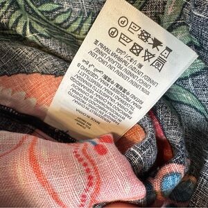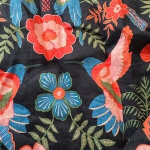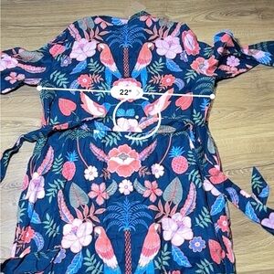 Tropical Bird Print Tunic Dress, 100% linen, new with tags. Size XL 16-18. Navy/mutli