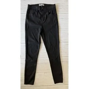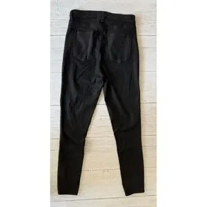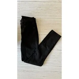 The Abercrombie & Fitch Super Skinny Ankle High Rise Curve Love Jeans in size 28/6R are designed for women who love a sleek and stylish look. These black jeans feature a high-rise waist and a super skinny fit, along with some comfortable give to the fabric, creating a flattering silhouette. The ankle length and skinny style make them a versatile option for everyday wear, dress them up with a pretty blouse or sweater, or dress it down with a hoodie. Perfect for those who appreciate quality and a trendy aesthetic in their clothing choices.