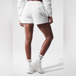 Alo Yoga The Alumni High-Rise Loose Running Shorts in White, Women’s size Medium