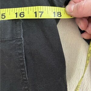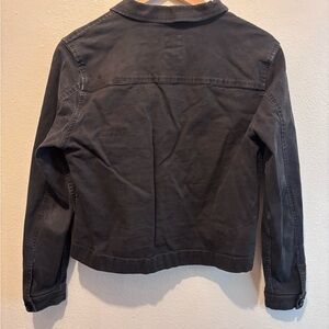 This jacket is in excellent condition though it has been worn. The black is faded to a worn in deep charcoal. Huge pockets hold an iPhone comfortably and there are even hidden pockets behind them for extra space! A wardrobe staple.