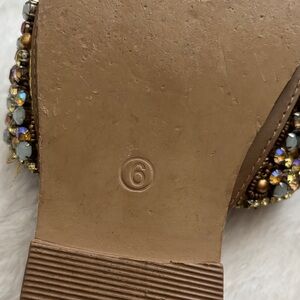 Step out in style with these embellished brown slide sandals. Perfect for adding a touch of glamour to any outfit. Size 6 minimal wear. Looks like 1 stone is missing see pic. Great pair of shoes just don’t wear a lot now. Smoke free home