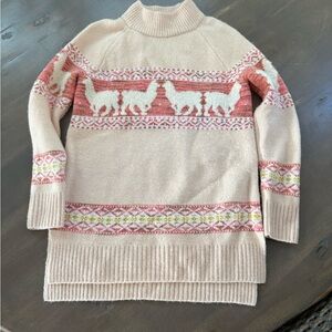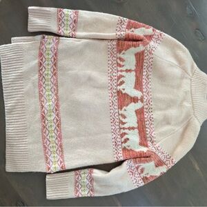 Chic alpaca design in soft pink and cream. Cozy and stylish for any occasion.